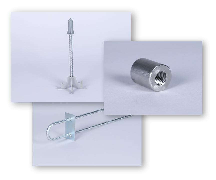 Les supports sont fabriqués en polypropylène de haute qualité et résistant à la rupture et à la flexion, et le noyau de la cale est une barre nervurée de diamètre de 8 mm.
